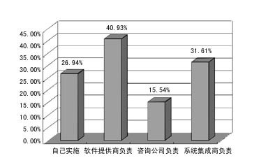 在用戶如何實(shí)施CRM系統(tǒng)的調(diào)查中,已應(yīng)用CRM的單位一般都是由自己或軟件提供商負(fù)責(zé),而沒用CRM的企業(yè)則大多期望能由軟件提供商負(fù)責(zé)。這說明,用戶實(shí)施CRM的主體意識還不夠強(qiáng)。