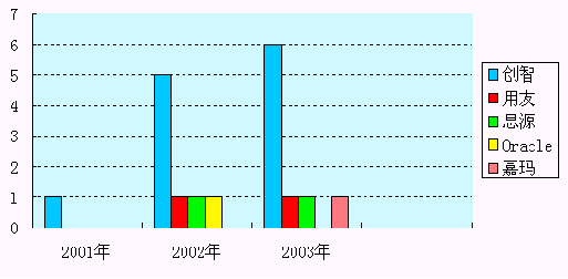 圖5:2001年至2003年10月底導(dǎo)入CRM的房地產(chǎn)企業(yè)分布數(shù)據(jù)統(tǒng)計(jì)。