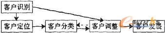 筆者認(rèn)為,客戶識別是貫穿整個(gè)客戶關(guān)系管理運(yùn)作流程的一條主線,也是企業(yè)判斷是否進(jìn)行以及如何進(jìn)行客戶獲取、客戶保持、關(guān)系終止活動的根本依據(jù)。這里筆者把客戶識別可以分為定位客戶、客戶分類、調(diào)整客戶和發(fā)展客戶幾個(gè)步驟(見圖1)。
