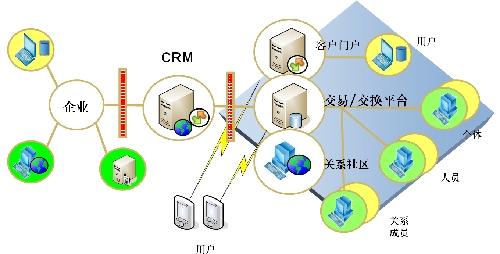 企業(yè)的社區(qū)營銷架構(gòu)不僅僅是在構(gòu)建一個網(wǎng)絡(luò)社區(qū),而是圍繞企業(yè)的應(yīng)用充分結(jié)合起來,包括企業(yè)的CRM系統(tǒng)、消費者門戶、社區(qū)以及交易交換平臺等。如圖所示: