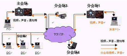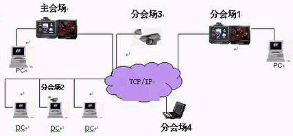 會(huì)議的組織,召開(kāi),管理由主會(huì)場(chǎng)來(lái)完成。因此,主會(huì)場(chǎng)的視頻,聲音,通知,指示,下達(dá)的文件資料各分會(huì)場(chǎng)都應(yīng)該收到。當(dāng)某分會(huì)場(chǎng)發(fā)言時(shí),其視頻,聲音同樣要傳送給其他會(huì)場(chǎng)。(如下圖所示)上述所有動(dòng)作的完成依賴組播技術(shù)。通過(guò)組播技術(shù)把主會(huì)場(chǎng)的各種數(shù)據(jù)發(fā)送到參加會(huì)議的分會(huì)場(chǎng)中,而且把發(fā)言分會(huì)場(chǎng)的視音頻數(shù)據(jù)發(fā)送給其他會(huì)場(chǎng):即主會(huì)場(chǎng)和發(fā)言分會(huì)場(chǎng)的各種數(shù)據(jù)只要在網(wǎng)上發(fā)送一次,其他會(huì)場(chǎng)都將收到此數(shù)據(jù),(這就是有別于點(diǎn)對(duì)點(diǎn)通信方式的地方)而與這兩個(gè)會(huì)場(chǎng)在同一網(wǎng)段卻不參加會(huì)議的非成員不會(huì)收到數(shù)據(jù)(只要設(shè)備支持,這也是有別于廣播的地方)。因此,當(dāng)會(huì)議成員增加時(shí),不會(huì)產(chǎn)生信息傳輸量劇增,帶來(lái)無(wú)法忍受的網(wǎng)絡(luò)延時(shí)和抖動(dòng)。