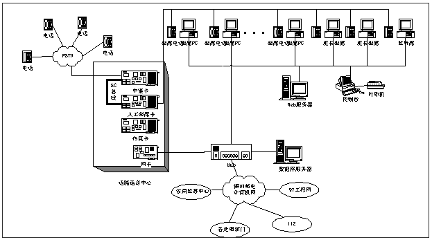 系統(tǒng)包括投訴建議處理、話路控制、秘書臺、電信業(yè)務咨詢、綜合統(tǒng)計、公告板、Web處理等業(yè)務模塊,以及系統(tǒng)用戶管理、錄音提取、基本設(shè)置、傳真管理等管理模塊,并實現(xiàn)了與97系統(tǒng)、112系統(tǒng)的互聯(lián)與資源共享。系統(tǒng)自九八年年底試運行以來,運行穩(wěn)定,為180臺受理用戶咨詢投訴的處理工作帶來較大幫助,基本解決了用戶投訴、查詢難的問題,提高了電信服務質(zhì)量,改善電信行業(yè)形象。