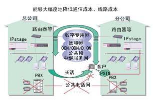 IP PBX還有一個非常吸引人的優(yōu)點,企業(yè)的各個分支結(jié)構(gòu)只要是在同一個WAN內(nèi),利用IP PBX,相互之間通信是走內(nèi)部網(wǎng)的,不存在市話費或者長話費,即使需要與異地公網(wǎng)上的客戶通信也完全可以先通過內(nèi)部網(wǎng)走,然后再走當(dāng)?shù)氐氖性捑路,來完成撥打長途電話,極大地節(jié)省了長途通信費用(圖二)。