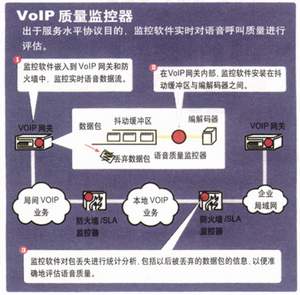 IP語音呼叫質(zhì)量無法用常規(guī)方式監(jiān)控。傳統(tǒng)的網(wǎng)絡(luò)監(jiān)控器的關(guān)注點(diǎn)是孤立的傳輸流統(tǒng)計數(shù)據(jù),而非固有的質(zhì)量、語音清晰度或最終用戶的感覺。這類傳統(tǒng)的工具提供有關(guān)鏈路吞吐量和利用率、抖動、延時、錯誤、包丟失總數(shù)或丟包率的孤立的數(shù)據(jù)。然而,這些統(tǒng)計數(shù)據(jù)沒有揭示呼叫質(zhì)量,因?yàn)樗鼈兒鲆暳蒜Оl(fā)丟失,不理會抖動緩沖區(qū)造成的包丟棄,沒有考慮網(wǎng)絡(luò)故障對用戶感覺造成的影響。