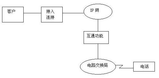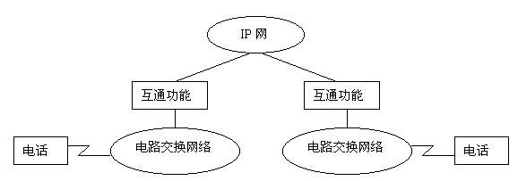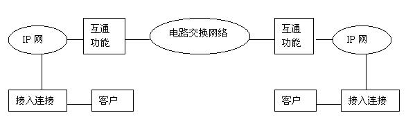 第三階段的重點(diǎn)是電路交換網(wǎng)通過(guò)IP網(wǎng)至電路交換網(wǎng),即實(shí)現(xiàn)以Internet作為傳送手段進(jìn)行通信的目的,其示意圖如圖所示。
