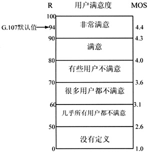 在E-Model測量中包含了影響窄帶電話通話質(zhì)量的多種傳輸參數(shù),在ITU-T G.107中提供了一組默認值,當(dāng)終端和應(yīng)用環(huán)境是正常的,可以直接使用這些默認值。根據(jù)這些默認值和一些可求的參數(shù)比如延時、丟包率等可以得到E-Model輸出的傳輸參數(shù)R。R直越大,說明語音質(zhì)量越好,R值的范圍是0-100,0是最差的,100是最好的。