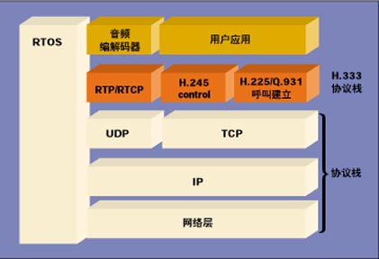 Q.931/H.225流程包括呼叫建立和拆除。圖1表示一個完整的H.323協(xié)議棧的實(shí)現(xiàn)。值得指出的是,該實(shí)現(xiàn)依賴于網(wǎng)絡(luò)協(xié)議棧和實(shí)時(shí)操作系統(tǒng)(RTOS)。多數(shù)應(yīng)用系統(tǒng)需要RTOS以便同時(shí)處理多個流程和/或呼叫。