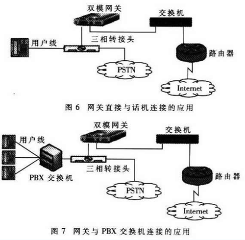 “雙!笔侵竀oIP和PSTN兩種模式。雙模網關是一種同時連接PSTN網絡和VoIP網絡并能在兩者之間自動切換的用戶端網關設備。雙模網關可以使用