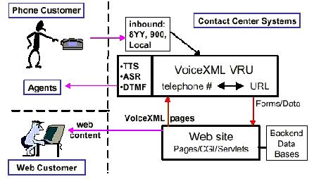 VoiceXML提供字符和語音輸入收集,將輸入分配給文件定義的請求變量,并且在用戶回答后做出決定的方法。VoiceXML確定文件可能被連接到其他的文件通過通用資源標示符(URI)。