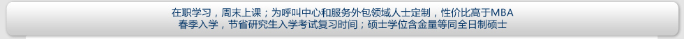 | 報名條件 | 擁護(hù)中國憲法,遵守法律、法規(guī),品行端正,身體健康,并能堅持在職學(xué)習(xí); 大專及以上學(xué)歷,旨在提高本人專業(yè)素質(zhì)和學(xué)歷層次的 社會在職人士均可報名;擇優(yōu)錄取。 呼叫中心、服務(wù)外包領(lǐng)域的中高級從業(yè)者,英語基礎(chǔ)良好的人士將獲得優(yōu)先錄取機會。 |