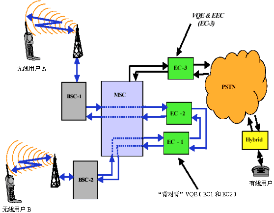 使消費(fèi)者滿(mǎn)意并不斷擴(kuò)大用戶(hù)基數(shù),抱著這一目的,很多無(wú)線服務(wù)提供商求助于補(bǔ)救措施,對(duì)2G的缺點(diǎn)進(jìn)行補(bǔ)償。與此同時(shí),數(shù)字無(wú)線語(yǔ)音與PSTN(公共交換電話網(wǎng))的連接要求用到電回聲抑制器(EEC),基于這一事實(shí),人們將VQE