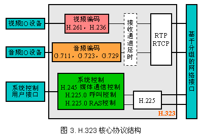 H.323是最早被采納的VoIP標準。H.323協(xié)議體系規(guī)定了基于分組網進行兩點/多點實時媒體通信的系統(tǒng)邏輯組件、消息定義和通信過程。