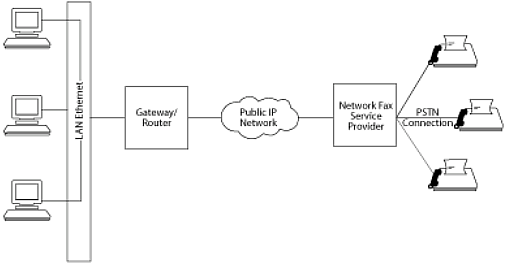 目前,許多的Internet傳真服務僅能提供存儲轉(zhuǎn)發(fā)傳真,這種服務在用戶電腦終端和世界其他地方的傳真網(wǎng)關(guān)連接在一起。這是一種傳統(tǒng)LAN傳真技術(shù)的擴展,客戶端的傳真網(wǎng)關(guān)允許客戶端PC或者工作站創(chuàng)建文檔并通過一個通用網(wǎng)關(guān)發(fā)送傳真。