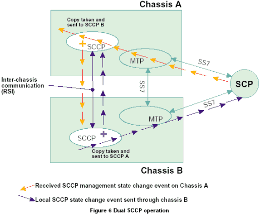 SCCP通過(guò)支持可尋址的子系統(tǒng)概念提高了消息傳遞部分(MTP)的路由能力。所有已知的本地和遠(yuǎn)端子系統(tǒng)的路由可用性(允許狀態(tài)或禁止?fàn)顟B(tài))在SCCP層中進(jìn)行管理。在一個(gè)由N個(gè)SCCP層(或多個(gè)SCCP的實(shí)例)組成作為同一節(jié)點(diǎn)編碼的系統(tǒng)中,用戶應(yīng)用程序和遠(yuǎn)端節(jié)點(diǎn)需要能夠通過(guò)任何SCCP實(shí)例交換SCCP數(shù)據(jù)消息,并且希望每個(gè)SCCP中的路由表都是相同的。為了達(dá)到這個(gè)目的,需要使用廣播機(jī)制增強(qiáng)SCCP層,這種機(jī)制將本地或遠(yuǎn)端的路由狀態(tài)的任何改變發(fā)送到廣播任務(wù)。廣播任務(wù)負(fù)責(zé)將路由變化傳送到N-1(其他)SCCP實(shí)例。在雙系統(tǒng)中,廣播任務(wù)只是另一個(gè)SCCP層,這兩層使用基于消息的API進(jìn)行通信。在一個(gè)雙機(jī)箱/子機(jī)架環(huán)境中,這些消息可以由RSI和TCP/IP組合來(lái)傳遞。