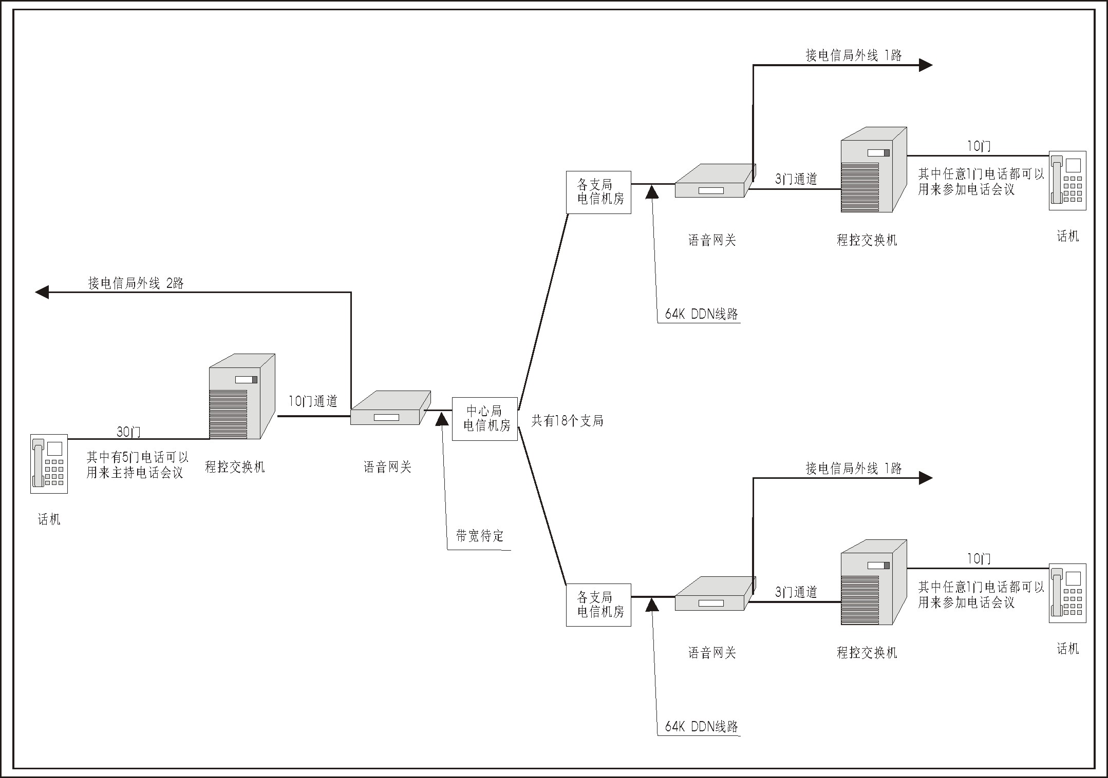 尋求合作電話會議網(wǎng)絡(luò)建設(shè) 。。本公司是一家工程公司,現(xiàn)要為某行業(yè)建設(shè)一程控電話+電話會議的集成網(wǎng)絡(luò),有現(xiàn)成的 。。敬請?zhí)峁┮环莘桨,包括系統(tǒng)的可行性論證、構(gòu)成及原理、設(shè)備 。。若有更好的解決方案,我們歡迎合作。 (點(diǎn)擊放大) |